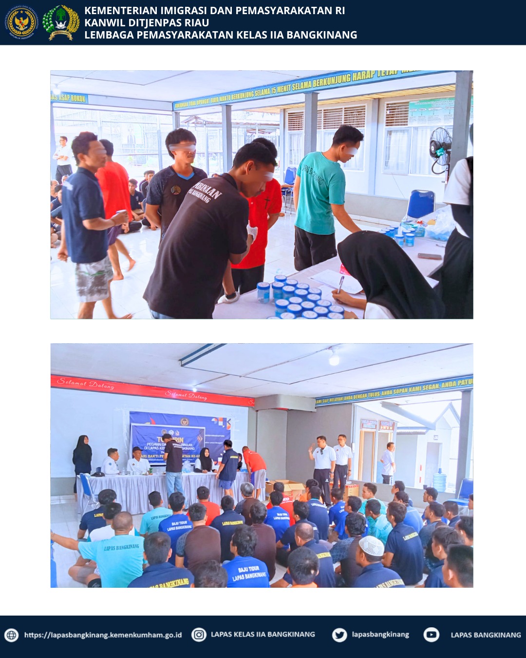 “Kegiatan tes urine dan razia gabungan ini merupakan perintah langsung dari Direktur Jenderal Pemasyarakatan dalam rangka Hari Bhakti Pemasyarakatan ke-62. Ini adalah komitmen kami untuk mewujudkan Lapas Bangkinang yang bersih dari narkoba dan barang terlarang lainnya,” ujar Alexander.